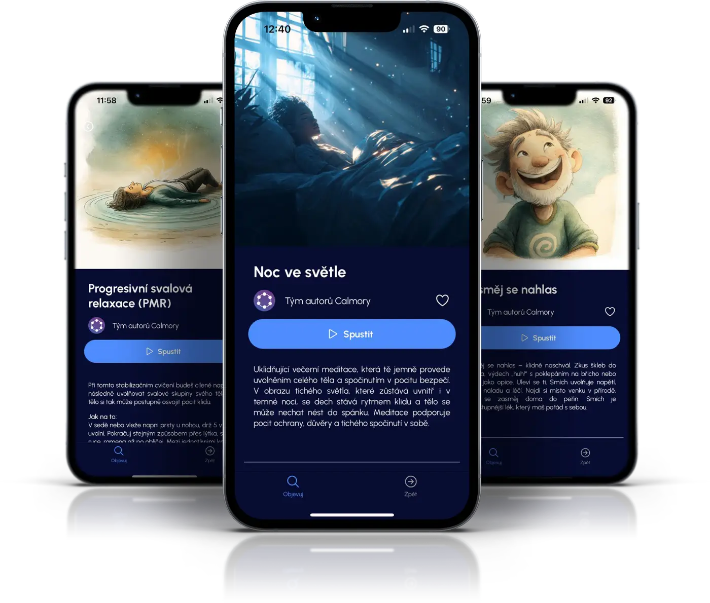 Objevujte svět Calmory v krátkých ochutnávkách – od ranního probuzení přes klidné poledne až po večerní ztišení. Takovýto obsah v aplikaci naleznete.